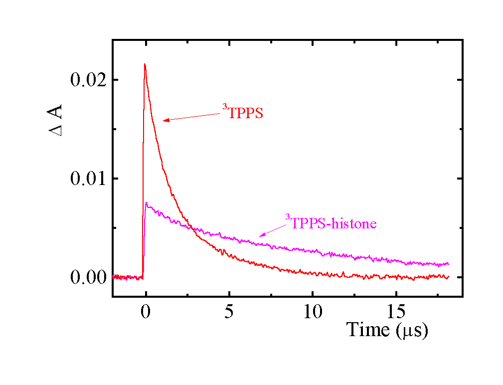 The combination of spectroscopy methods including UV/Vis, fluorescence, light-scattering, transient spectroscopy, laser-induced optoacoustic spectroscopy (LIOAS) and time-resolved luminescence detection of singlet oxygen was applied for characterization sensitizer-histone ground state interactions and their influence on photophysical properties.