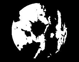 Figure 3 a) A typical sky image (in this case with the sun blocked), recorded by the Sky Camera; b) The resulting sky image of a) after image processing with the non-linear algorithm and c) the resulting sky image of a) after image processing with the new linear algorithm. White is cloud and black is sky, except for the sun's disk which is subtracted from the image in case b). A unique problem which was confronted when analysing the images of the present research, was determining the state of the suns disk (whether it was blocked or not). In most cloud imaging to date, the sun has been blocked by a gooseneck or shadow band device, thus avoiding the imaging of the bright sun. The manual observer was trained prior to the study by comparison with official meteorological whole-sky cloud cover observations for reported 9 AM and 3 PM data, and was found to be accurate to ± 1 okta. The observer wore protective sunglasses and carefully determined if the sun was blocked by cloud and then estimated the cloud cover around the sun, in a similar field of view as the sky camera. During the 12-month period, 231 images and 129 corresponding manual observations were collected at local noon, with a solar zenith angle (SZA) ranging from 4.2 to 51 °. Cloud type ranged from Cumulus (36 %), Stratus (9 %), Alto-Cumulus and Alto-Stratus (15 %), sky's containing Cirrus cloud (11 %) and the remainder being other cloud combinations. As in the case of the visual evaluation of the sky images produced by Sabburg & Wong (1998), the manual observer found difficulty in determining the state of the sun's disk and the amount of cloud cover in the presence of Cirrus clouds. Therefore, for the purposes of this validation, the presence of predominant Cirrus cloud cases has not been included. This left 115 cases with corresponding manual observations (Table 1). It should also be noted that for the purposes of this evaluation, partial obstruction of the sun was taken as disk obscured. The cloud amount percentage is that covered by cloud in the 75 ° field of view (FOV) of the sky camera centred on the sun. Table 1 - Results of comparison between manual sky observation and algorithm derived cloud parameters for 115 images recorded at local noon near the sun.