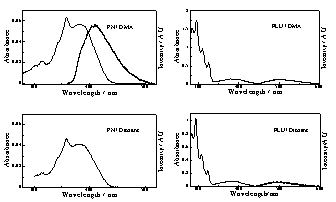 fluorescent in DMA, FF = 0.008. The same solvent trend is