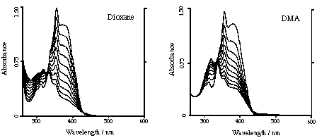 solutions at 367 nm in air equilibrated DMA and 1,4-dioxane, are shown in the figure
