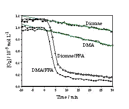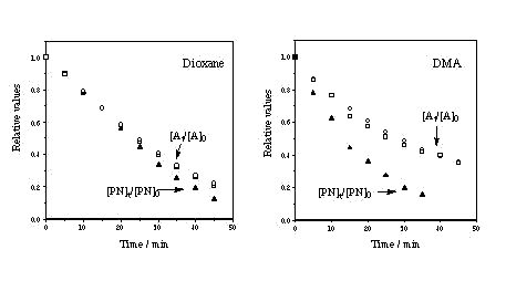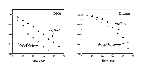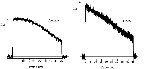 analysis) under continuous irradiation of air equilibrated DMA and 1,4-dioxane solutions (lex