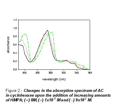 the absorption spectra.As it is typically shown in Fig. 3 for the AC-HMPA system,