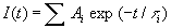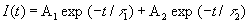 where A1 and A2 stand for the contribution at zero time of the two components with lifetimes t 1 and t 2.