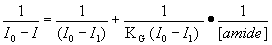 the reciprocal of the lifetimes, k1=1/t 1, against amide concentration according to