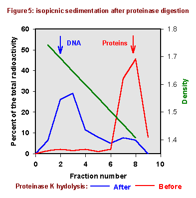 radioactivity bands at DNA density; this means that before proteinase digestion