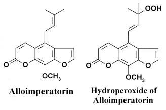 Fig.1. The structures of alloimperatorin and alloimperatorin hydroperoxide.
