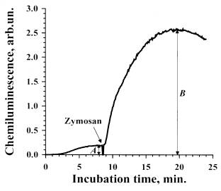 Fig.2. A typical curve of zymosan-stimulated luminol-dependent chemiluminescence of rat peritoneal neutrophils.