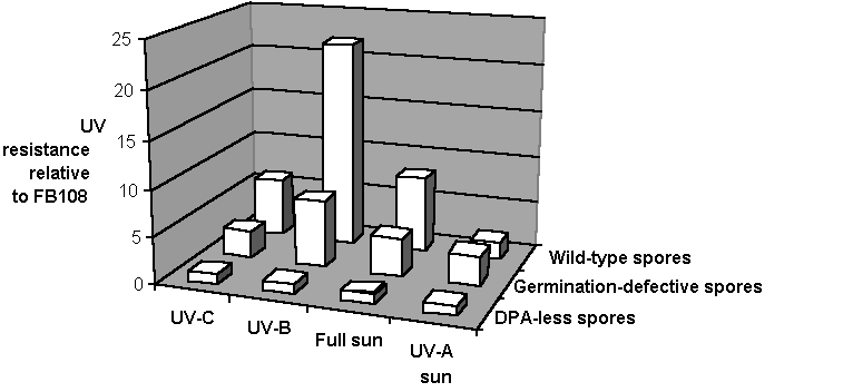 1. The resistance of bacterial spores to solar UV is the sum of a number of protective, photochemical, and repair mechanisms.