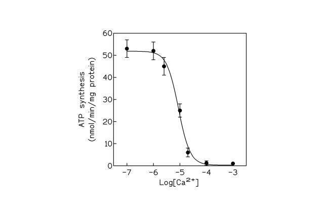 Figure 2. ATP synthesis in ROS disk membranes versus external free calcium concentrations. Each point represents the mean of triplicate measurements.