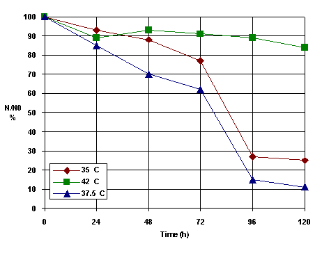 Figure 5. The HSV derma inactivation for different temperature (A-type cells suspension)