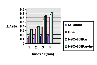 1- SC alone; 2- SC+sample I +800 R/e; 3- SC+Sample I +800R/e; 4-SC+ sample I +800R/e +hn
