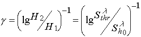 where H1 and H2 are energetic dose defining the range within which for the development procedure used thickness of residue layer on the substrate varies from zero to the starting value; Shl is light sensitivity of photoresist defined as a value reverse to energetic dose H2.