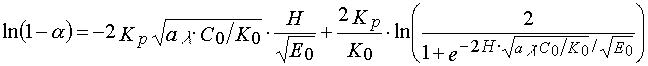 where a (h,t) is conversion of monomer in a layer at distance, h, from the irradiated surface at current time, t; h0 is layer thickness.