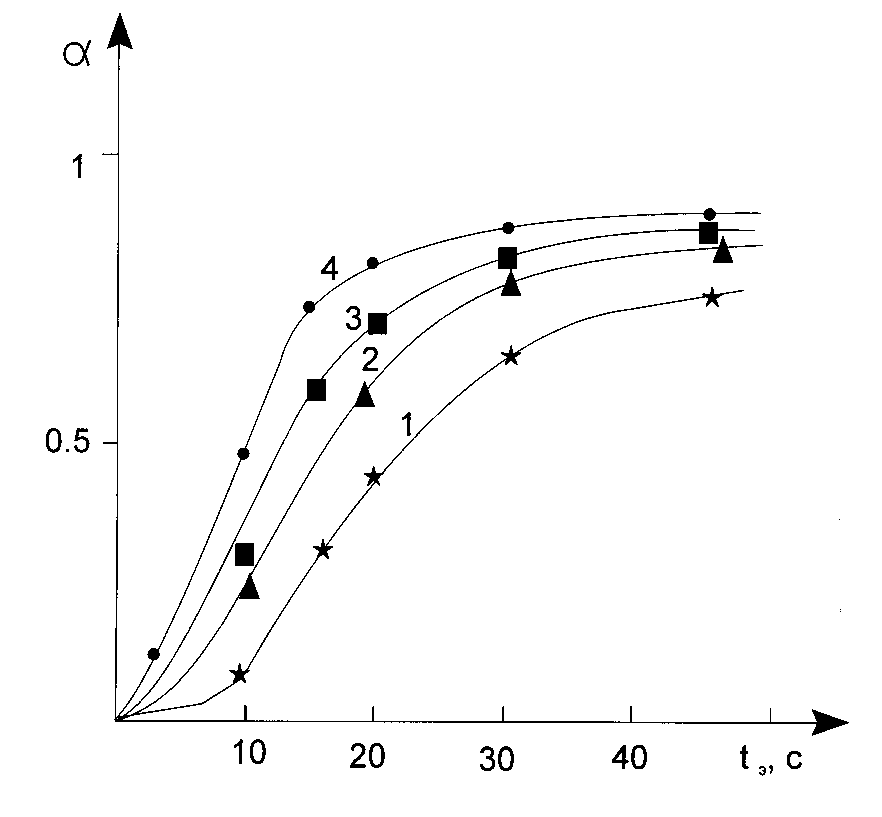 If the polymerization reaction in PPP layers goes in the stationary regime, then an interpretation of such curves are quite unambiguous. Induction period in PPP is connected with conception of a radical polymerization inhibitor containing in the layer and can de calculated as [3,4]: