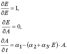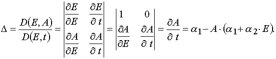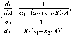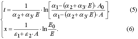 An important consequence of the theorem 2 is the statement that for all E and A from P : 0 < E £ E0 and 0 < A £ A0 excluding the point W 2 = (E*,A0) in the case of reaction 1 there is determined mutually unambiguous and mutually continuous transformation from the (E,t) independent variables to the (E,A0 ones, and the transformation has the following form