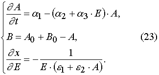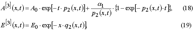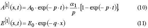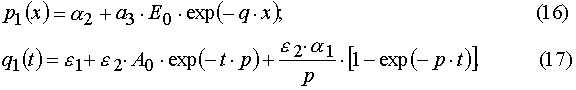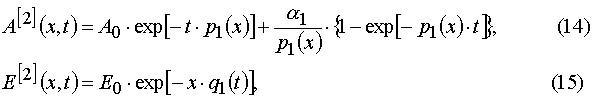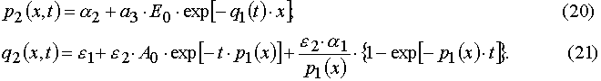 Our solutions given by eqs (14)-(21) give us an opportunity to find u.v. light intensity and concentrations of reagents for irradiation time, t, and at depth of a layer, x. However we usually can register experimentally only the dependencies E(t) and A(t) for the given film thickness, h. So we have to deal with an average concentration