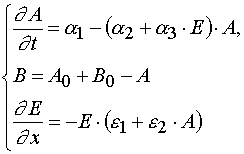 In the systems (1) x and t are independent variables, and A, B, E are the dependable variables. The initial and boundary conditions are