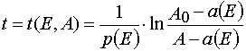 The reverse transformation from the (E,A) to the (E,t) independent variables has the following form