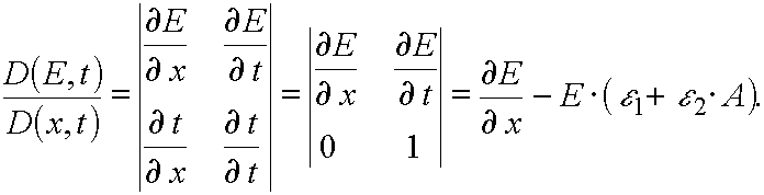 Let us calculate the Jacobian of the transformation from (E,t) to (x,t) variables. It has place E(x,t), t