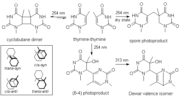 and trans-syn cyclobutane dimers, (6-4) photoproduct and Dewar valence isomer of