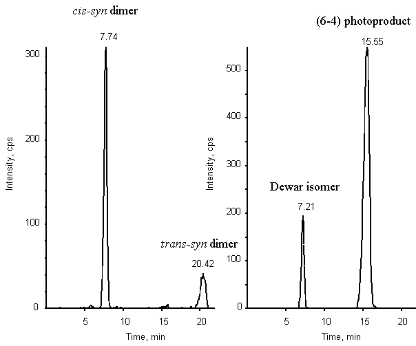 the cis-syn cyclobutane dimer were eluted close to each other. However, their