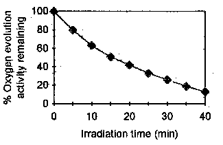 intensity UV280 light (2.0 W/m2) on the oxygen evolution in isolated PSII particles as a