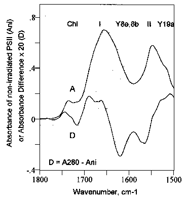 of non-irradiated PSII. D, difference FT-IR spectrum of PSII, i.e., [PSII