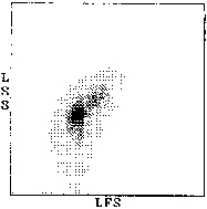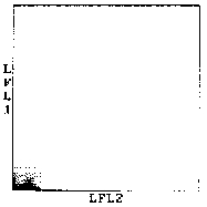 Double logarithmic plot of laser fluorescence 1 intensity distribution (LFL1) vs. laser fluorescence 2 intensity distribution (LFL2)