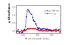 still present on the microsecond time scale, decomposes further to form products or reacts