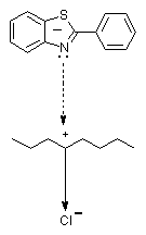 The comparing of the data for the model compounds permit to be make the follow conclusions. The increase of the values of s during the irradiation is connected with the process of crosslinking or crystallization. The reverse is evidence for destruction. At the same time, as much polymer is more crosslinking, much the ultimate stain is lower. With other words, the increase of e during the irradiation lead to the increase of the amorphous mass and the destruction is more effective. In the end, the higher values of E show that the strength increases, the elasticity decreases and that can be written of the presence of process of crosslinking. As that can be seen compound 2 is responsible for the crosslinking of PVC. The compound 1 activate the destruction of polymer. That conclusion is in accordance with the results of Petkov[7] for the role of some unsubstituted 2-phenylbenzothiazoles (with one basic centre) as activators of the photoinduced dehydrohalogenation of PVC. The presence of second basic centre change the situation. For example, for the compounds with structure:(Scheme 5)