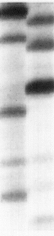 Figure 1) mRNA from untreated (lane 1) and UVB treated (60 mJ/cm², lane2) cells were reverse transcribed and amplified using the primer pair H-T11G and H-AP (Genhunter, Co. USA). cDNA were separeted on a 6% polyacrylamide denatured gel and detected by autoradiography. mRNA differential display demonstrated a varity of gene expressions which were either up- or downregulated by UVB as indicated by arrows. K1 and K2 were downregulated and U1 showed an upregulation after UVB treatment. These effects were confirmed by Northern blot analysis (Fig.2).