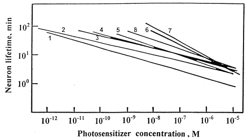 characterizing the dependence of neuron lifetime on photosensitizer concentrations