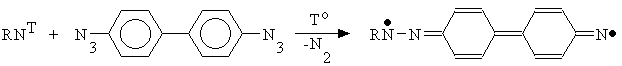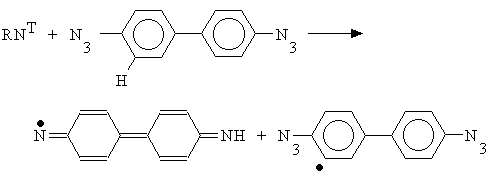 reaction mechanism, nitrenes. The organic azides decompose under u. Reiser and coworkers [3] is seemed to be the first who have described the mechanism of the polymer formation. They proposed that the polymer molecules were formed as the result of singlet nitrene, RNS, insertion into C-H bond of phenyl rings.