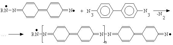 In the next step the biradical formed could react with another adjacent azide molecule and so on up to the azopolymer formation.