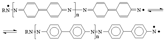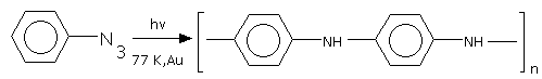 Another japanese research group [13] to interpret photoelectron spectra of polymer being formed under u.v. irradiation of phenylazide freezed onto a gold substrate at 77 K return ed to the idea proposed by Reiser and Leyshon (reaction 1). These workers wrote down the polymerization mechanism as on the following scheme.