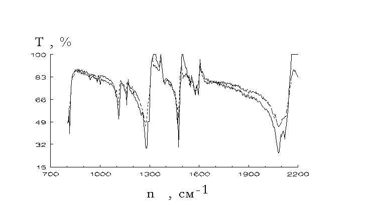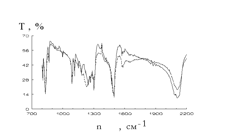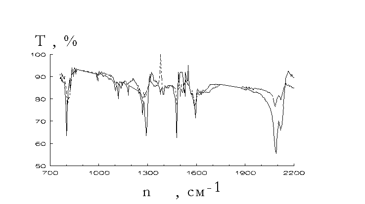 Thus our brief review has shown that either the chemical nature of the polymeric product being formed under an aromatic azide photolysis in the crystalline state or the mechanism of the polymer formation are far away to be Thus our brief review has shown that either the chemical nature of the polymeric product being formed under an aromatic azide photolysis in the crystalline state or the mechanism of the polymer formation are far away to be Thus our brief review has shown that either the chemical nature of the polymeric product being formed under an aromatic azide photolysis in the crystalline state or the mechanism of the polymer formation are far away to be Thus our brief review has shown that either the chemical nature of the polymeric product being formed under an aromatic azide photolysis in the crystalline state or the mechanism of the polymer formation are far away to be established. .To determine the chemical nature of polymer product formed in the aromatic azide photolysis in the crystalline state we used thin layer chromatography (TLC), IR spectroscopy, and u.v. spectroscopy. In addition we simulated aromatic azide crystal packings with atom-atom potential procedure and with envelop trajectory method [5,6] and did quantum chemistry calculations of some reaction paths of the mechanism presented by reactions 5-7 [17,18].IR spectra investigations could give an important information on the structure of the polymers formed. Fig.1-3 show s changes of the IR spectra under the photolysis of aromatic azides. They were recorded with SPECORD 75 IR spectrophotometer. Mixtures of the irradiated azide powders and KBr have been pressed into tablets, the latter being used for IR spectra recordings.