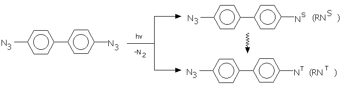 The attempt to deta ilize the mechanism of the azopolymer formation under u.v. irradiation of aromatic azides in the crystalline state was undertaken in [14-16]. At the first step of the mechanism proposed in [14] there has place an azide decomposition to form a nitrene in the triplet (ground) and the singlet (excited) state.