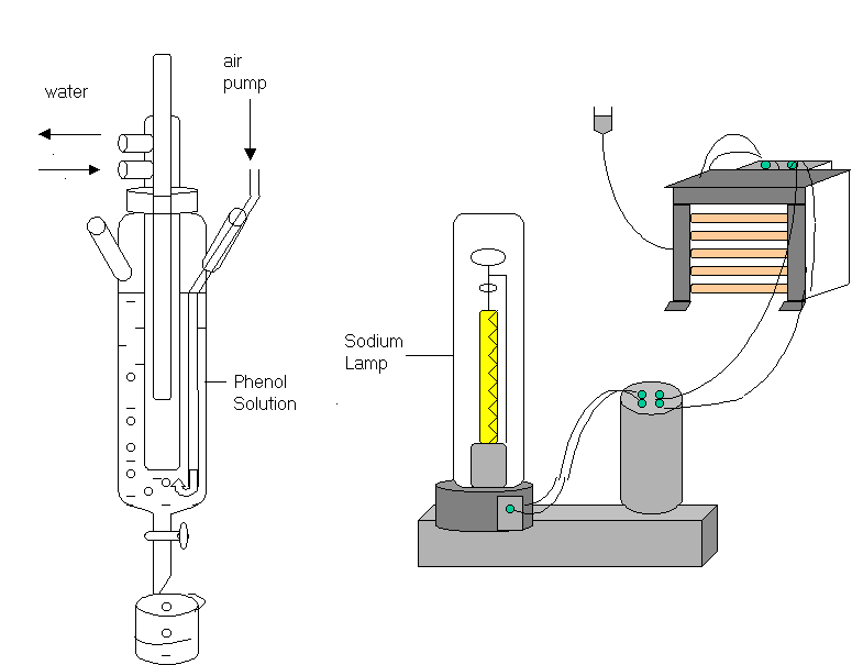125 ml of phenol solution was illuminated in the photoreactor system . Sodium lamp was placed in 4.0 cm distance from the side wall of the pyrex glass reactor. The inlet pump tubing was located on the bottom of the solution. Whole