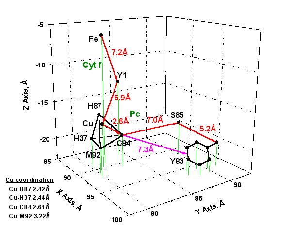 f) to histidine 87 and the Cu-atom in plastocyanin