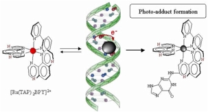 In our laboratory, Ru(II) complexes bearing p-deficient ligands such as TAP (=1,4,5,8-tetra-azaphenanthrene) were designed as photoreactive agents towards DNA. These complexes are able to form a "photo-adduct" with DNA, i.e. to form a covalent bond with a desoxyribonucleic base of DNA under visible illumination. This kind of photoreactions could be at the origin of biomedical applications.