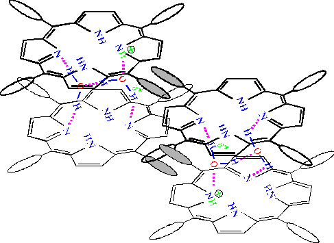 - these aggregates are thought to be form in the result of self-assembly from different protonated porphyrin dimers due to hydrophobic interaction between phenyl rings of neighboring porphyrin dimers and hydrogen bonds between water molecules involved in water -porphyrin dimeric complex.