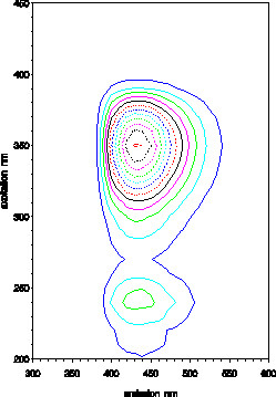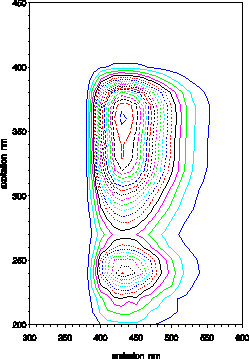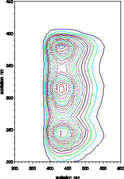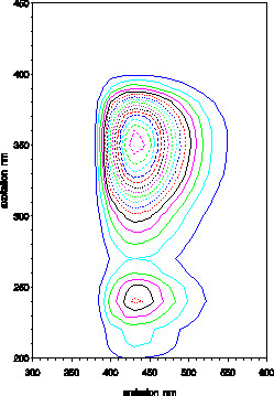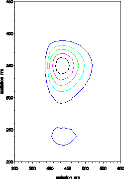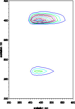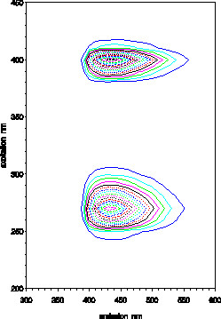 Figure 5 3-D fluorescence plots of Uvitex NFW in water at various concentrations