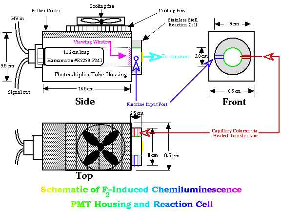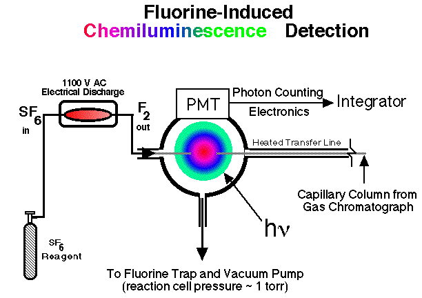 ozone- and fluorine-induced, sodium vapor, and chlorine dioxide chemiluminescence